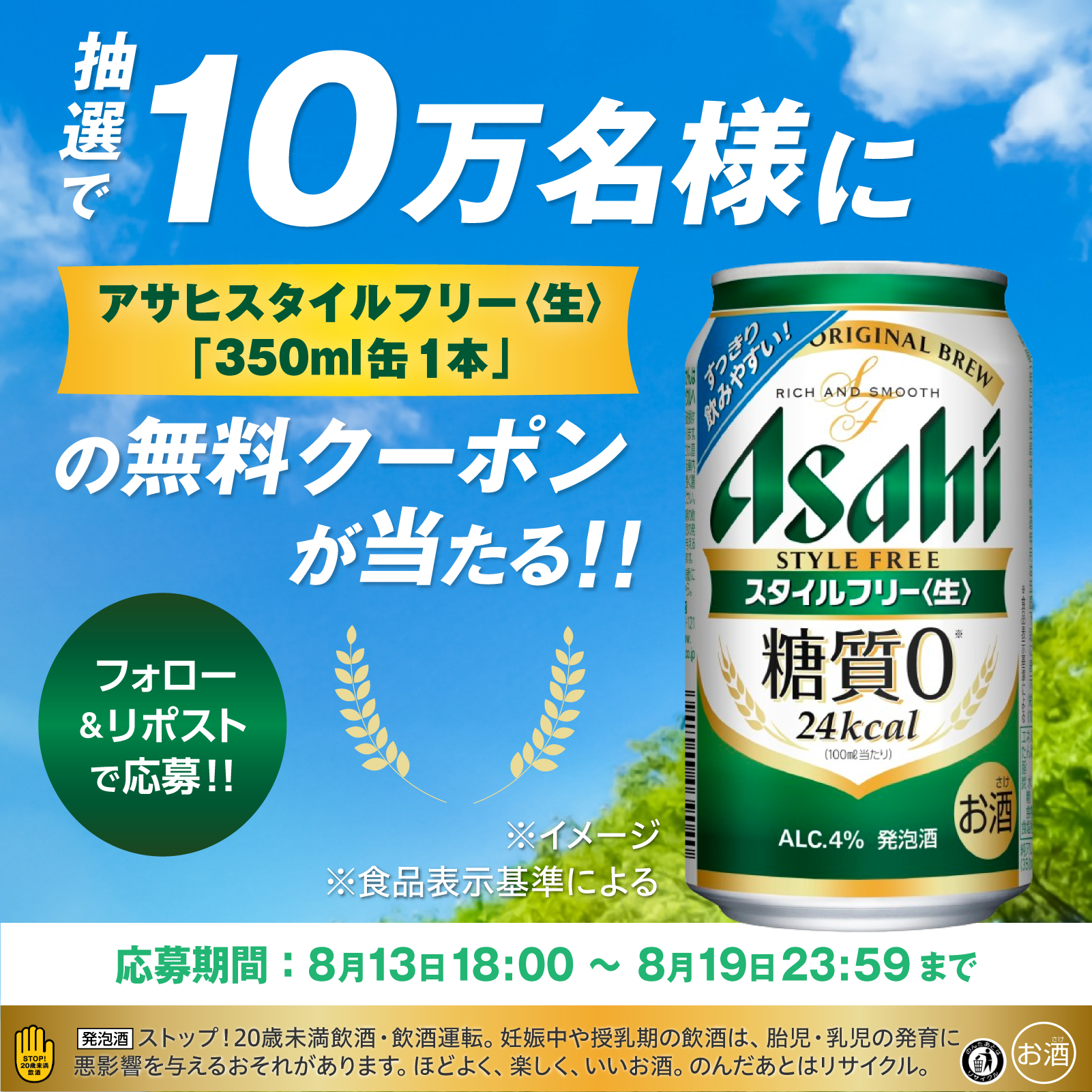 株式会社ローソン(以下、「当社」といいます)が主催する「ローソン×アサヒスタイルフリーXキャンペーン」(以下、「本キャンペーン」といいます)へ応募いただく方(以下、「応募者」といいます)は、この応募規約(以下、「本規約」といいます)をよくお読みいただき、ご応募ください。